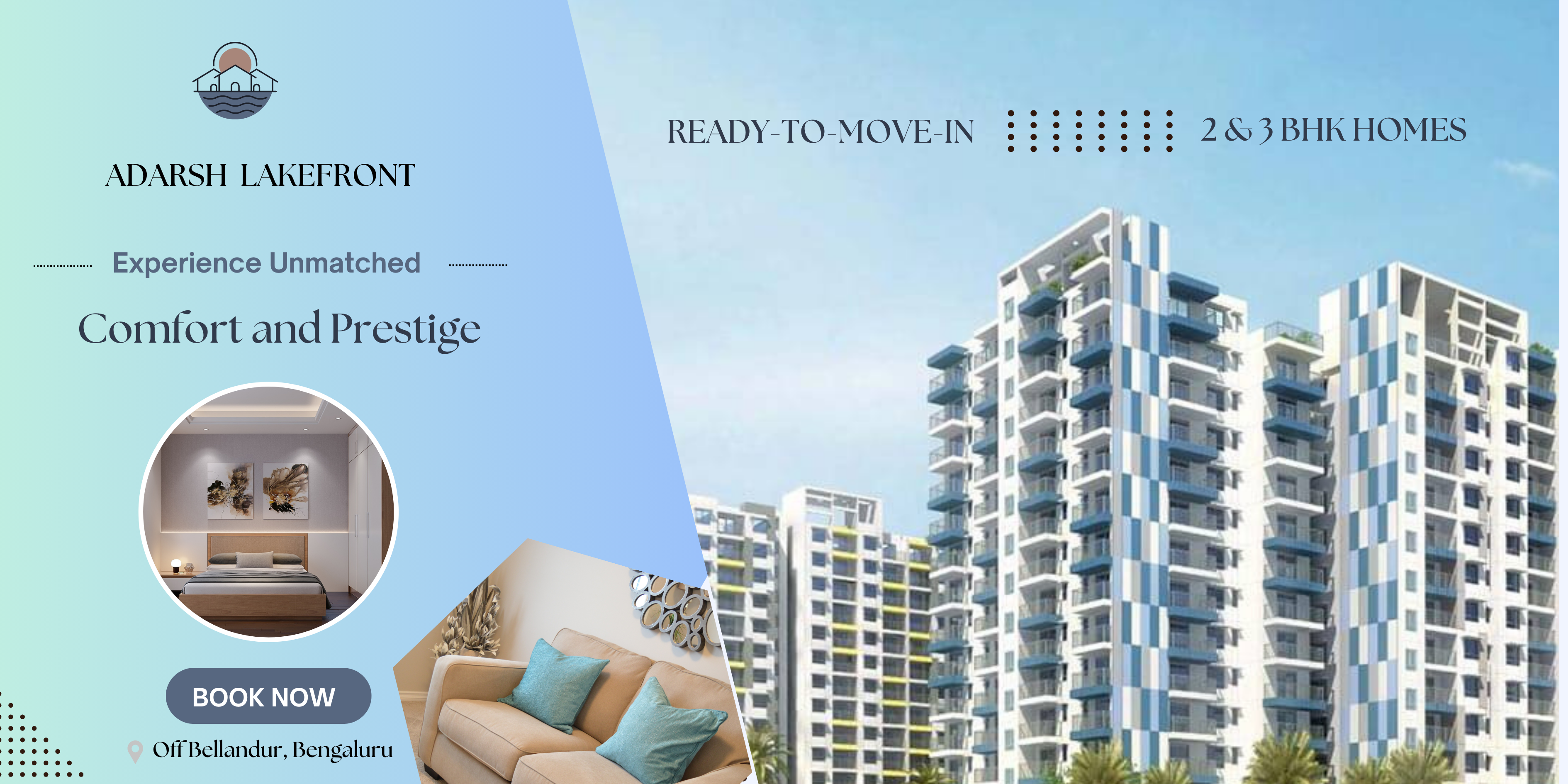 Nestled in the vibrant heart of Bellandur, Adarsh Lakefront stands as a distinguished residential enclave that elevates urban living with its serene lakeside ambiance and elegant design. This thoughtfully planned community features spacious 2, 3, and 4 BHK apartments, blending modern architecture with functional, stylish interiors. Designed to offer residents uninterrupted views of the tranquil lake and expanses of lush greenery, the project promotes a refreshing lifestyle surrounded by nature.